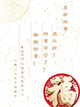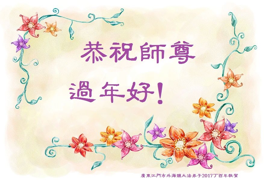 新的一年里我们将一如既往的努力做好三件事,在修好自己的基础上多救人,以报师恩! 广东江门大法弟子恭祝师尊过年好!