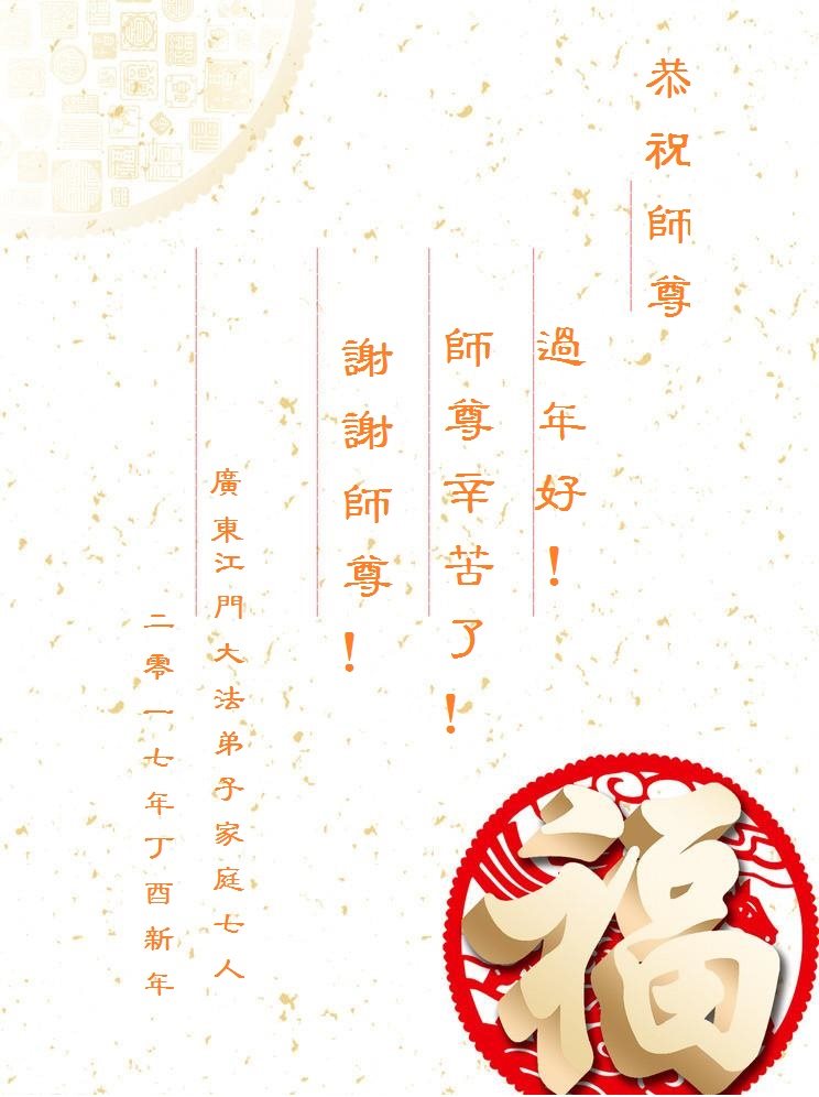 广东江门大法弟子家庭七人恭祝师尊过年好!