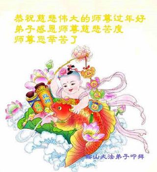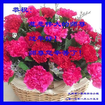 辽宁省沈阳苏家屯生活区全体大法弟子及家属给师尊拜年:恭祝师尊过年好!师尊辛苦了!