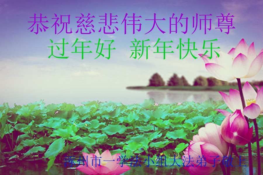 金鸡齐鸣洪势到 过年叩拜师父好 弟子众生谢师恩 法轮飞旋新春报 世人觉醒真相找 法徒救人显神妙 师恩浩荡苍宇新 满载众生上九霄 内找修己使命挑 私我强执皆尽抛 无私无我法中游 信师懂法修境高 整体升华映春晓 实修精進师父笑 神思纯净正路走 随师正法神佛道 河北保定市涿州市一学法小组大法弟子恭祝慈悲伟大的师尊过年好!