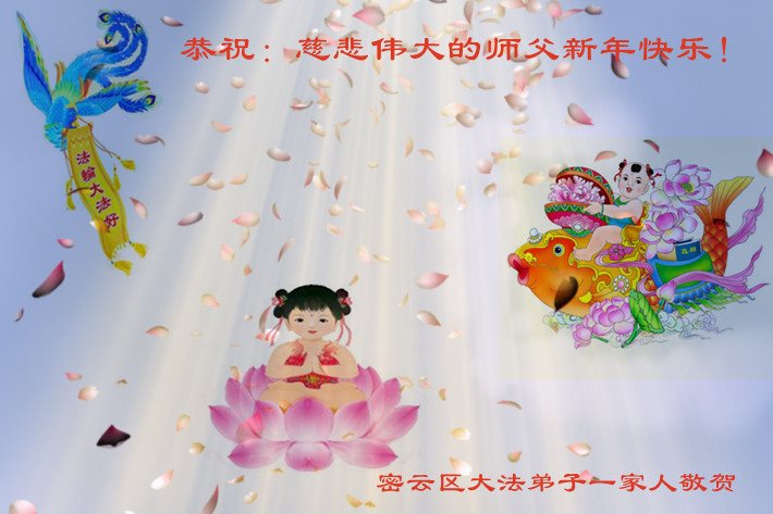 密云区大法弟子一家人恭祝慈悲伟大的师父新年快乐!