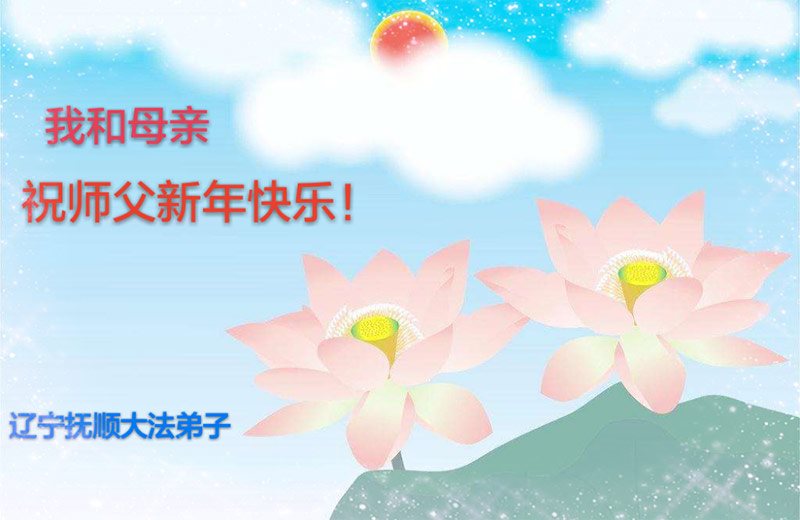 辽宁抚顺一大法弟子和母亲祝慈悲伟大的师父新年快乐!师父辛苦了!