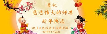 恭祝师尊二零一七新年快乐!在新的一年里,愿师尊少操劳多欣慰,我们会努力做好自己该做的一切,完成自己的责任。 四川资阳雁江区大法弟子恭祝师父新年好!