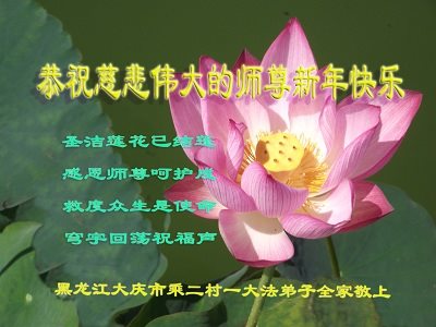 我们更加精進,做好三件事,不辜负师父的慈悲救度,让师父多一些欣慰,少一些操劳,师父我们想您,盼望您早日回来! 黑龙江省大庆市一中年大法弟子及家人恭祝恩师新年好!