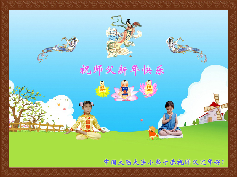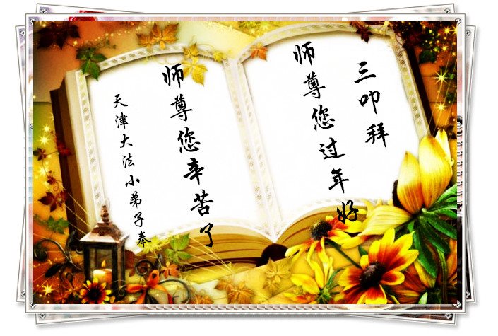 恭祝慈悲伟大的师尊过年好! 师尊辛苦了!感恩师尊慈悲苦度! 惟愿师尊笑! 哈尔滨一姐妹大法弟子及小弟子四人 吉林市大法弟子携大法小弟子祝师尊过年好!
