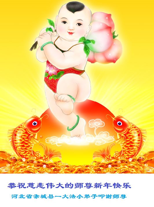 尊敬的师父您好:师父新年快乐!小弟子不知道怎么表达对师父的感恩,在这里谢谢师父为弟子承受的一切。 内蒙古赤峰市大法小弟子祝师父新年快乐!