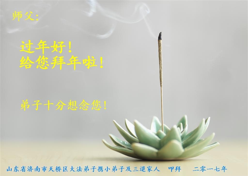 师父谢谢您的慈悲苦度!在这最后时刻,一定按您的教导修炼好自己,同时做好您嘱咐的三件事,并带好小弟子。 天津市大法弟子、大法小弟子及家属给师尊拜年:叩拜慈悲伟大的师尊二零一七年过年好!