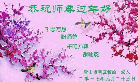 石家庄市栾城区大法弟子及明真相的全家人给师父拜年!恭祝师尊新年快乐!感恩师父救度之恩无以言表!师父,您辛苦了!盼师父早日回国! 河北唐山市明真相的一家人恭祝师尊过年好!