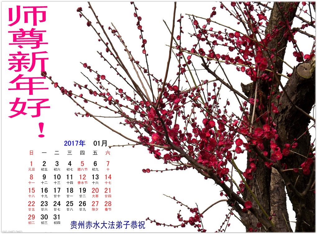 【明慧网二零一七年一月二十九日】 贵州省安顺市普定县全体大法弟子丙申年新年恭祝师尊新年快乐!