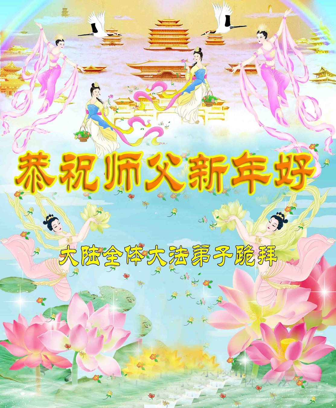 用上世间的所有语言都不能表达弟子对师父的感恩、思念,弟子们唯有修好自己,正念正行,助师正法,兑现誓约! 重庆大法弟子恭祝师父新年快乐!