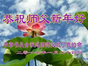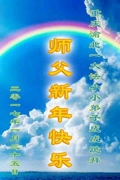 重庆一大法弟子及全家感谢师父救了自己的命。恭祝师父新年好! 重庆渝北大法弟子恭祝师父新年快乐!