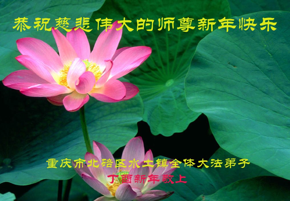 重庆市北碚区水土镇大法弟子恭祝慈悲伟大的师尊新年快乐!