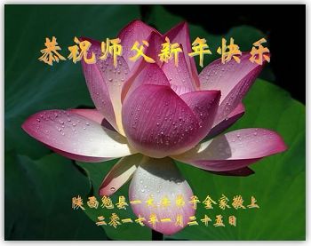 感谢师父救度之恩,在今后的修炼中努力修好自己,做好三件事,兑现誓约,紧跟师父坚修大法到底,同师父回家! 陕西汉中明真相众生恭祝师尊新年好!