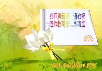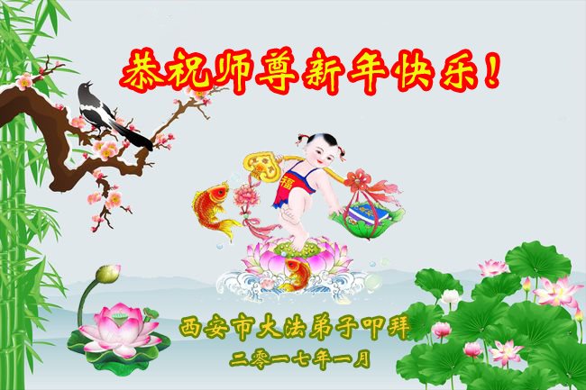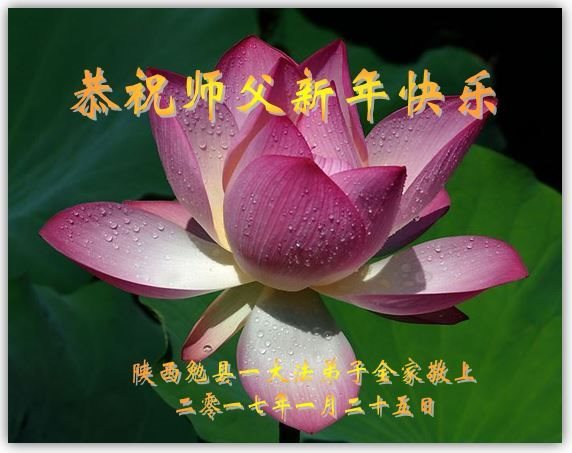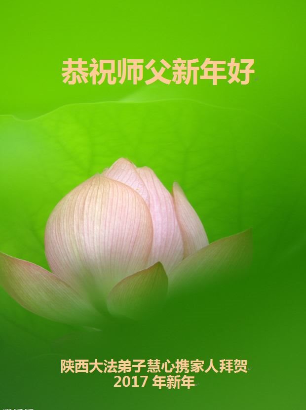 在新的一年来临之际,我们全家大法弟子恭祝师尊新年快乐!弟子们唯有用精進、精進、再精進来回报师尊的慈悲苦度,谢谢师尊! 陕西公务员系统大法弟子恭祝师尊新年快乐!