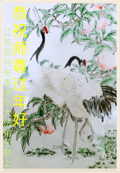 二零一七大年到 敬问师尊过年好 弟子逐渐成熟了 师尊大恩永记牢 坚修大法不动摇 心性提高再提高 酉年过后戊年到 泰山顶上问师好 师父弟子齐欢笑 一览众山小小小 师尊导航弟子行 助师正法在世间 神笔震邪讲真相 正念清除邪恶窝 江苏苏州张家港市大法弟子恭祝师尊过年好!