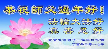 北京大法弟子一家三口恭祝师尊过年好!