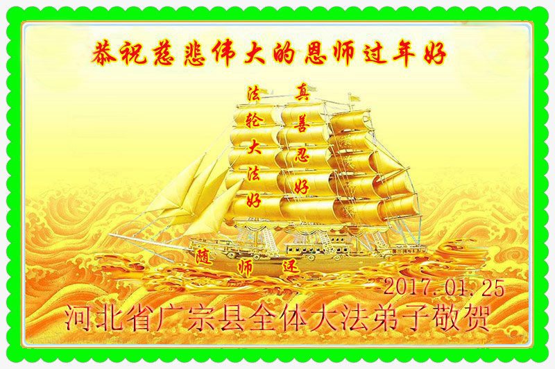 我一定会努力的,我要跟师父回家。谢谢师父! 河北省邢台市广宗县全体大法弟子恭祝慈悲伟大的恩师过年好!