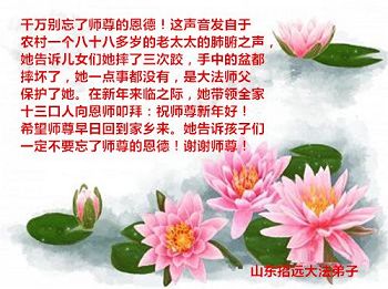 山东省潍坊一学法小组大法弟子恭祝师父过年好!