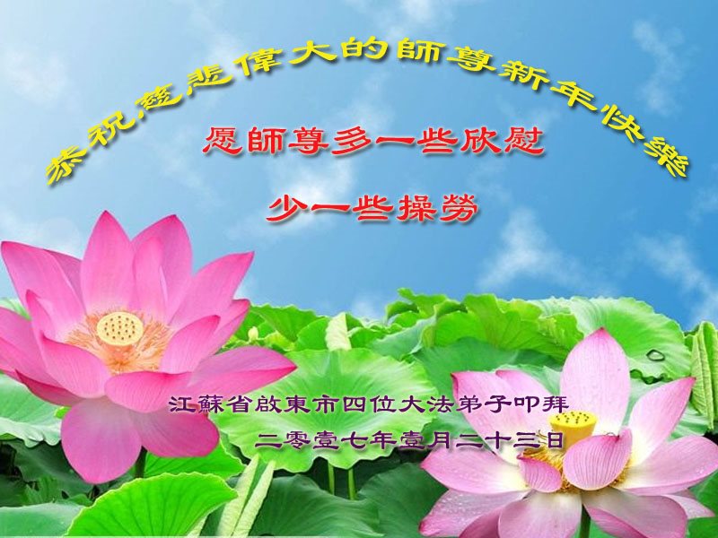 江苏省南通市启东市四位大法弟子恭祝慈悲伟大的师尊新年快乐!
