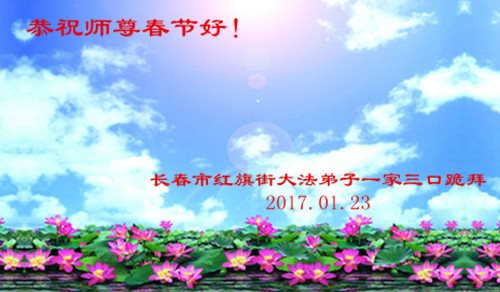 吉林省长春红旗街大法弟子一家三口恭祝师尊新年好!