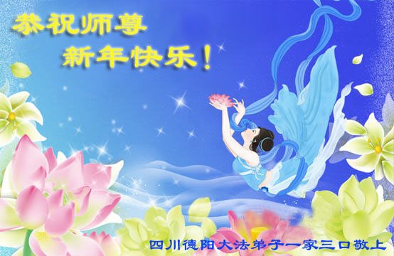 四川省德阳市大法弟子全家恭祝师尊新年快乐!