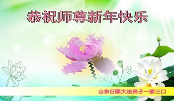山东省招远市玲珑镇大法弟子叩拜师尊,恭祝师尊:新春快乐! 山东日照大法弟子一家三口恭祝师尊新年快乐!
