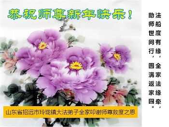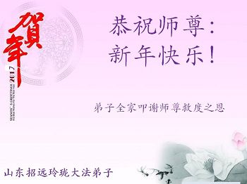 【明慧网二零一七年一月二十九日】 山东省烟台市招远市玲珑镇大法弟子恭祝师父新年快乐!