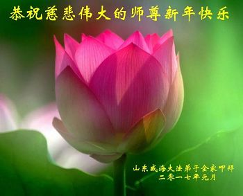 慈悲、伟大的师尊,在2017新年之际,大陆山东烟台学法小组全体大法弟子问候师父:过年好! 弟子叩首 山东省威海市乳山市大法弟子问候师父好!师父辛苦了!