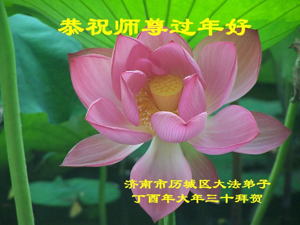 弟子恭祝慈悲伟大的师父新年快乐! 济南一老年大法弟子叩拜 山东省济南大法弟子恭祝师尊新年快乐!