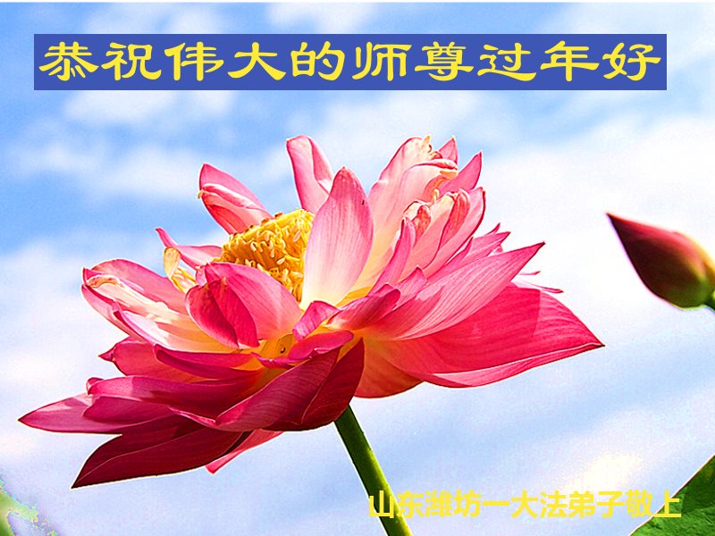 慈悲伟大的师尊:您好! 在新年来临之际,向你致以节日的祝愿。我能成为您的底子,是我今生最大的荣幸,结缘了这个大法,知道了人活着的真正含义,我会以真善忍的法理严格要求自己,助师正法,精進、精進、再精進! 完成好大法的责任,不辜负师尊的苦度,圆满随师还! 山东省潍坊昌乐县大法弟子恭祝师尊新年快乐!