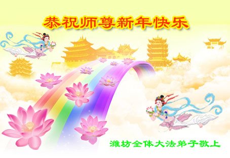 慈悲伟大的师父:过年好! 我是一个以前不够精進的大法弟子,经过师父慈悲苦度,现在幡然醒悟,决心迎头赶上,做好三件事,不愧为正法时期大法弟子称号。 山东潍坊全体大法弟子祝师父新年快乐!