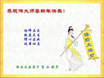 感谢恩师慈悲救度!师父辛苦了! 陕西西安一老年大法弟子恭祝伟大师尊新年快乐!