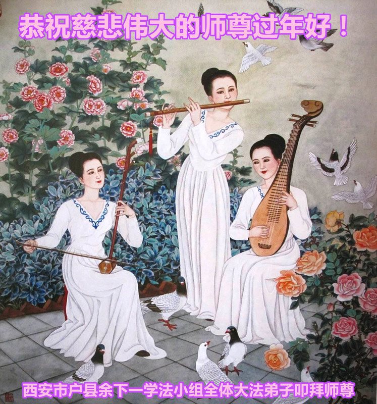 感恩师尊!师尊您好!师尊您辛苦了!我们一定听师尊的话,学好法,做好三件事,圆满随师还。 陕西省西安市户县余下一学法小组全体大法弟子恭祝慈悲伟大的师尊过年好!