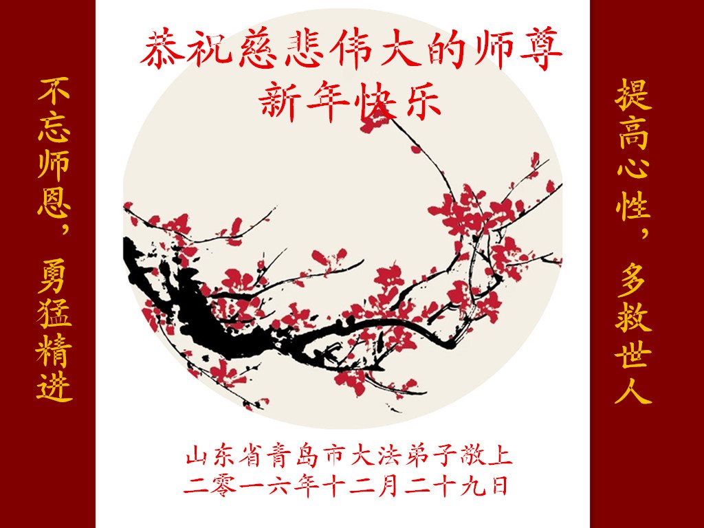 山东省青岛大法弟子及全家恭祝师尊新年快乐!