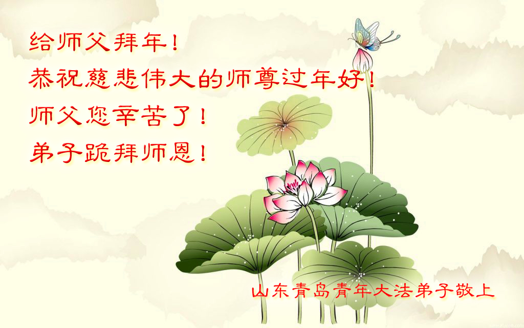 恭祝师尊过年好! 我们一定要信师信法,学好法,做好三件事,走好以后的路。 山东省青岛市大法弟子敬上 山东省青岛大法弟子给师父拜年!