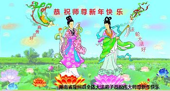 感恩师尊的加持呵护,让我们在正法大道上顺利前行,我们会做的更好,叩谢师尊。合十! 江苏省全体丹阳大法弟子恭祝师尊新年快乐!