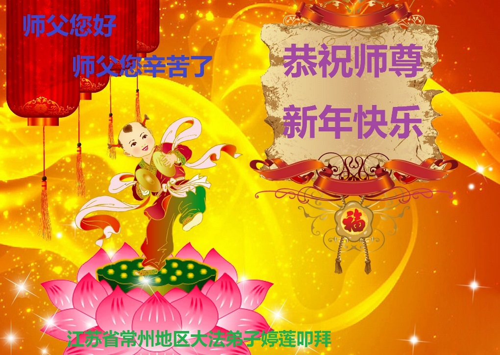 师父您好!师父过年好!弟子全家恭祝师尊新年快乐!感谢师尊慈悲苦度,叩谢师恩! 江苏南京一大法弟子恭祝师尊新年好!