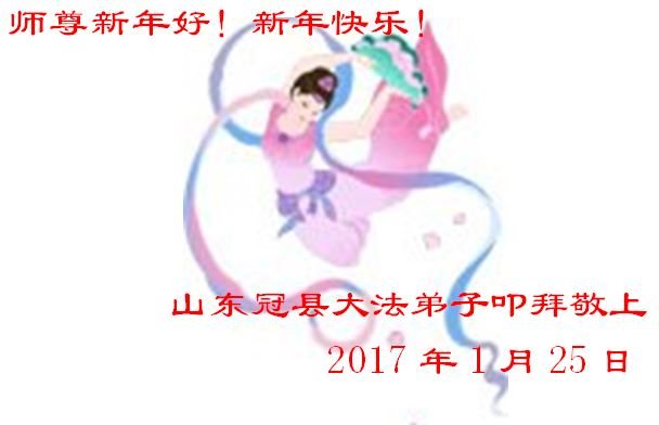 在新年来临之际,弟子和母亲给师父拜年,恭祝师父新年好。谢谢师尊慈悲救度。在新的一年里要学好法,向内找,修好自己,多救人,兑现誓约,跟师父回家。 石家庄大法弟子 2017.1.25 河北省衡水市武邑县大法弟子叩拜师尊!师尊过年好!