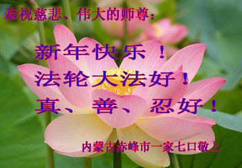 尊敬的师父: 弟子和女儿在大陆给您拜年了,师父过年好!师父辛苦了! 回忆弟子十九的修炼路,有师父的呵护,弟子有喜有乐,也有后悔和遗憾。但此生为法来,弟子无比庆幸…… 师父!师父!在修炼的路上,回归的路上,弟子愿牵着您的衣襟,牵着您的衣襟…… 新年之际,弟子思念师父,思念师父……弟子谢谢师父! 弟子会一直在师父指的路上,走好!带好小弟子! 河北大法弟子与女儿叩谢师父 内蒙古赤峰市一家七口恭祝师尊新年快乐!