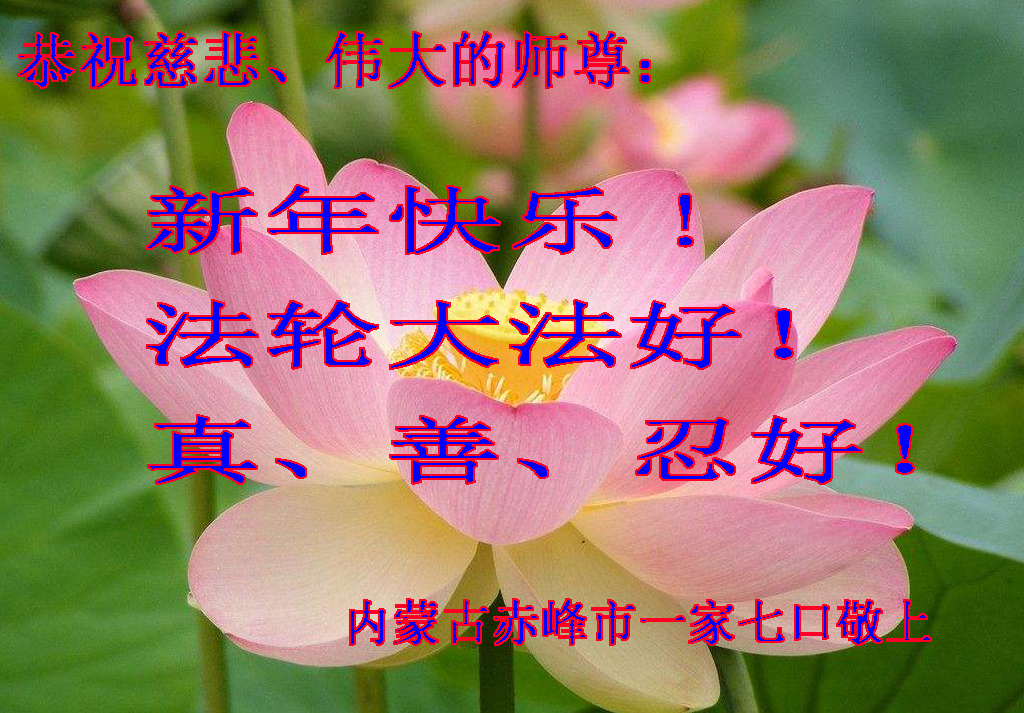 感谢师尊慈悲救度弟子全家,过去的每一步都离不开师尊的慈悲呵护,恭祝师尊新年快乐!黑龙江五常大法弟子全家跪拜。 辽宁沈阳大法弟子恭祝师父新年好!