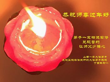 师尊新年好!在此请接受弟子由衷的感恩:师尊谢谢您!在新的一年,弟子一定会做的更好。再次叩拜师尊! 上海市浦东新区一教师大法弟子恭祝慈悲伟大的师尊过年好!