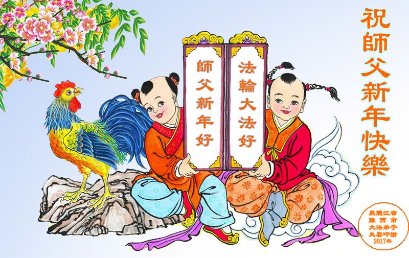师父新年好!弟子向师父拜年:师尊新年快乐!师父您辛苦了,弟子想念师父,盼望师父早日回国与您团聚。 弟子愿在新的一年里做好三件事,勇猛精進,求师父加持弟子成为合格的弟子。 黑龙江省佳木斯地区农村母子二位大法弟子叩拜师尊! 二零一七年一月二十六日 黑龙江省佳木斯佳西一学法小组大法弟子恭祝慈悲伟大的师尊过年好!感谢师尊慈悲救度!