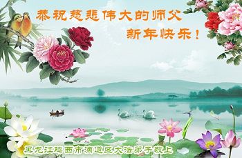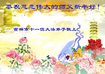 尊敬的师父,您好!感谢师尊的慈悲救度。弟子跪拜师尊,师父您辛苦了!我们一定牢记师尊教诲,坚信法轮大法的法理,遵从真、善、忍法理的教导,同化大法真、善、忍,坚定的和师父回家。弟子一定做好大法弟子应该做的三件事,让更多世人明白真相。 叩谢师尊! 吉林市松花江边一学法小组恭祝师尊过年好!