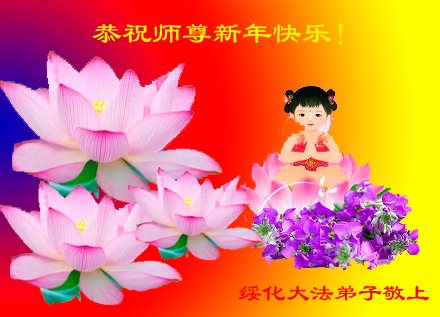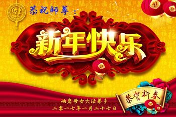 在新的一年里,我们一定抓紧学法修心性,多向内找,多救人,做好三件事,让慈悲伟大的师父少操心。 河北省石家庄九十二岁大法弟子家属恭祝师父新年快乐!