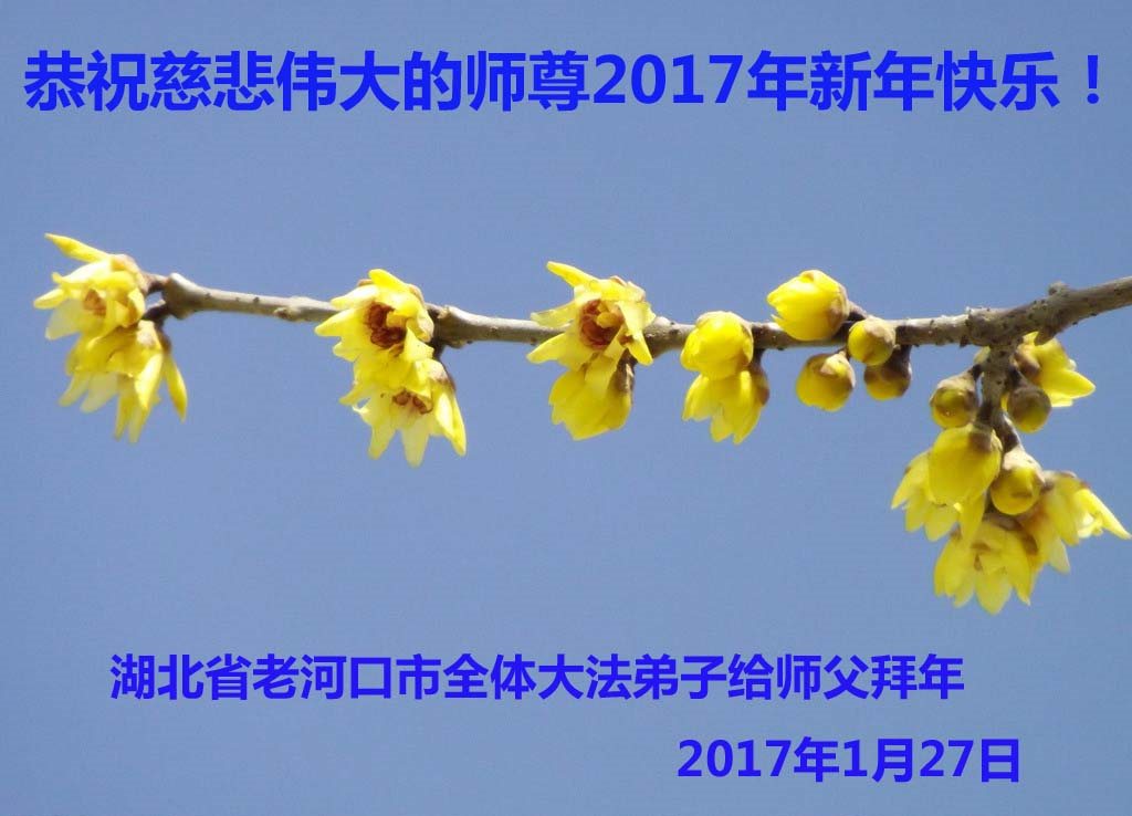 感恩师父,实修自己,做好三件事! 湖北省襄樊市老河口市全体大法弟子恭祝师父2017年新年快乐!