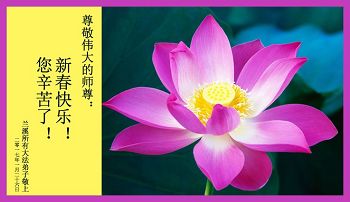 师尊您好!您辛苦了!弟子给您拜年了!恭祝慈悲伟大的师尊新年快乐! 师尊啊!弟子每到这时都想和您多说几句心里话,谢谢您为弟子创造了一次又一次的提高心性的机会,弟子是个六十年代的早产儿,不知为什么能奇迹般的活下来,在九八年得法后才找到了答案,是生生世世都在师尊的慈悲看护下才有了弟子的今天,是师尊给了我第二次生命,是您给了我人身,又是您安排了我出生在这万古不遇的修炼的主戏台中土,当了主角,助师正法。这是师尊给予的幸福与荣耀,您为弟子与众生操碎了心,在十几年的修炼过程中,弟子回顾以往有负于您,有过懈怠,看电视,有执着,惰性,在修炼的路上留下了遗憾,师尊啊,我错了。 在新的一年里弟子一定会加快脚步,修去所有不符合法标准的一切,把自己真正的交给师尊,用大法来衡量自己,遇事不忘自己是修炼人,在学好法修好自己的基础上做好三件事,多救人,在同修误解有委屈时无条件向内找,圆容师尊所要的,走向成熟,否定旧势力的一切安排,在修炼的路上奋起直追,弥补遗憾,做一个踏踏实实的真修弟子,完成史前大愿,紧紧拽着师尊的手和您回家。愿师徒早日在大陆相见。 跪拜师尊! 北京大法弟子敬上 潍坊大法弟子祝慈悲伟大的师尊新年快乐!