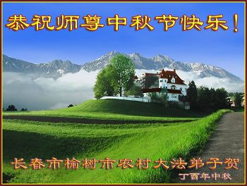 黑龙江省哈尔滨市双城市区一农村大法弟子全家恭祝师尊中秋节快乐!