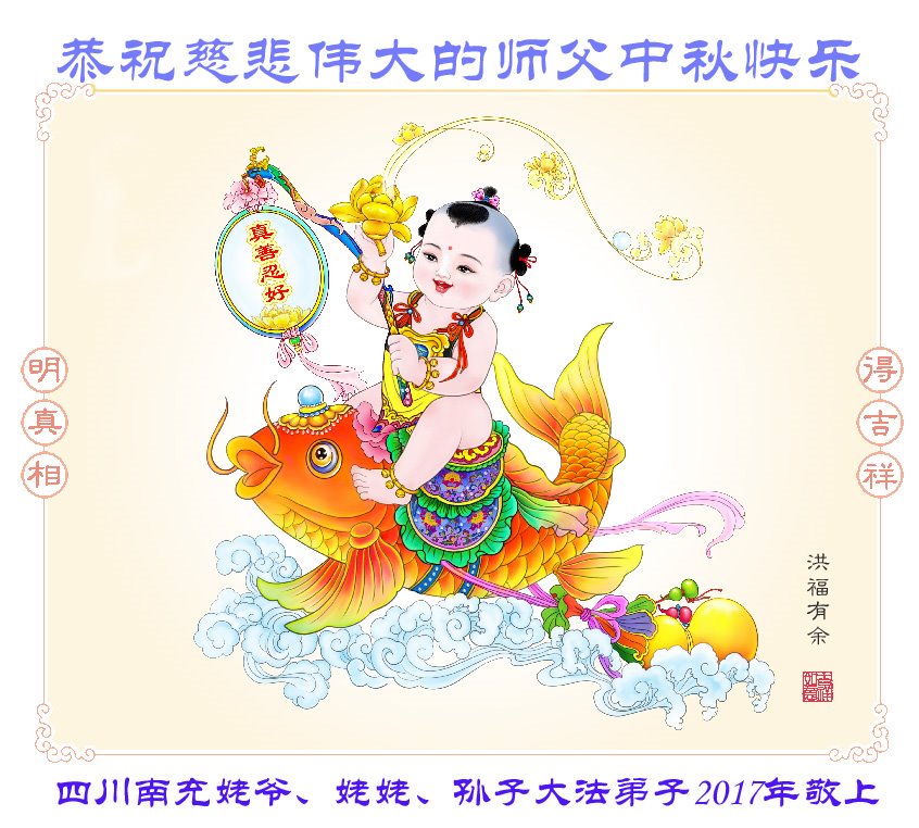 弟子谢谢师父的慈悲救度,弟子一定会努力做好师父要求的三件事。 四川省达州市开江县老年夫妇大法弟子及全家人恭祝师父中秋快乐!