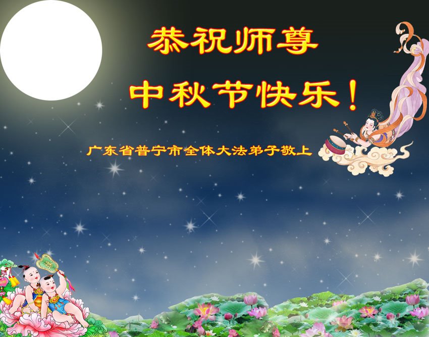恭祝慈悲伟大的师尊中秋节快乐! 广东蕉岭全体大法弟子敬上 广东深圳市大法弟子恭祝慈悲伟大的师尊中秋节快乐!