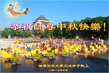 湖南省湘潭科技大学大法弟子恭祝慈悲伟大师尊中秋快乐!